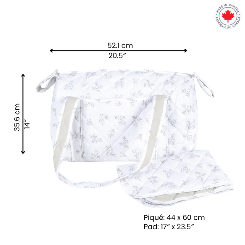 Découvre l'harmonie parfaite entre style et fonctionnalité avec notre sac à couches canadien, conçu pour les parents modernes. Le motif discret de feuilles ajoute une touche naturelle, tandis que le coton matelassé offre une sensation douce et résistante. Assez spacieux pour contenir des couches, des bouteilles et tous tes essentiels, ce sac à couches est un indispensable pour les sorties en famille. Avec son grand tapis à langer inclus, il assure la commodité où que tu sois. Conçu au Canada, ce sac allie praticité et charme, te permettant de te sentir prêt et confiant à chaque aventure.